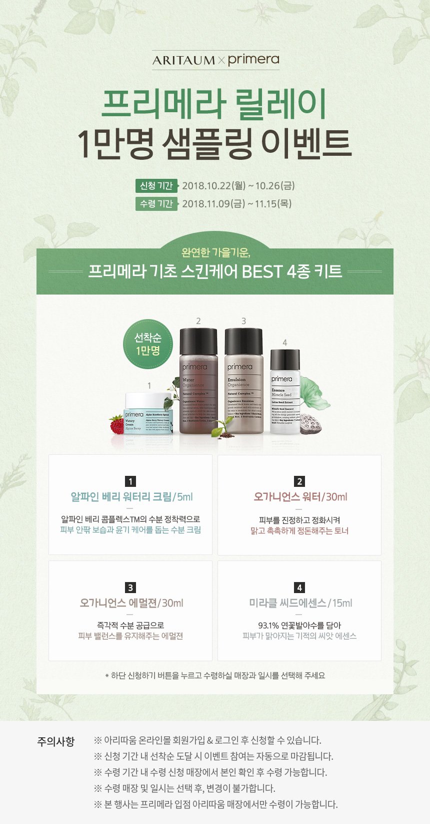 이벤트명 : 프리메라 샘플링 이벤트(선착순 마감)